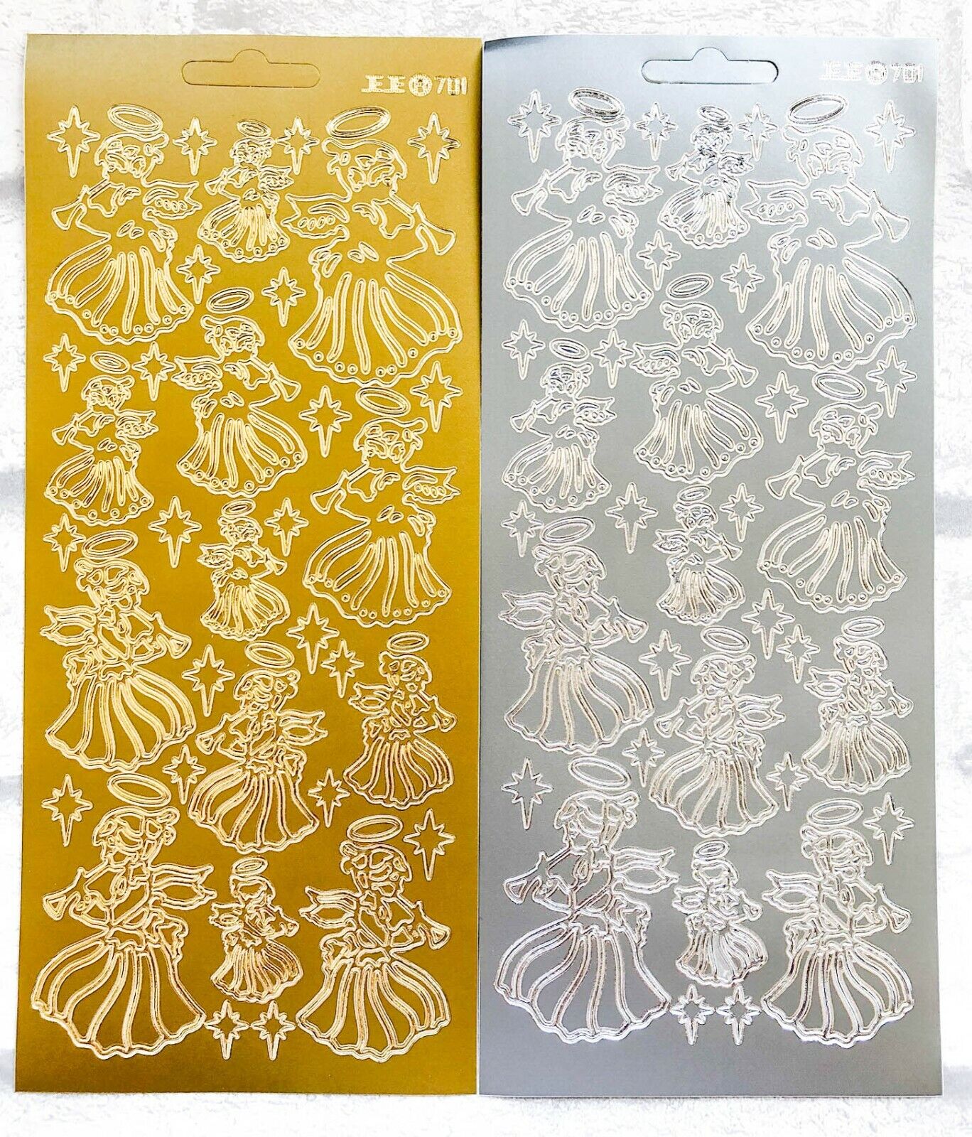Embrace the ease and versatility of these stickers, as they effortlessly peel from their backing sheets and adhere to any craft project, whether it's cardmaking or scrapbooking. Unleash your imagination with these stickers—colour them using suitable pens, employ them as outlines to create stunning coloured designs, or layer them to achieve a captivating 3D effect. Additionally, the backing sheet can be utilised as a negative for further artistic exploration. With these Simple Christmas Angels Peel Off Sheets, achieving a professional finish has never been simpler. Elevate your holiday crafts to a whole new level of sophistication and charm with these delightful embellishments.